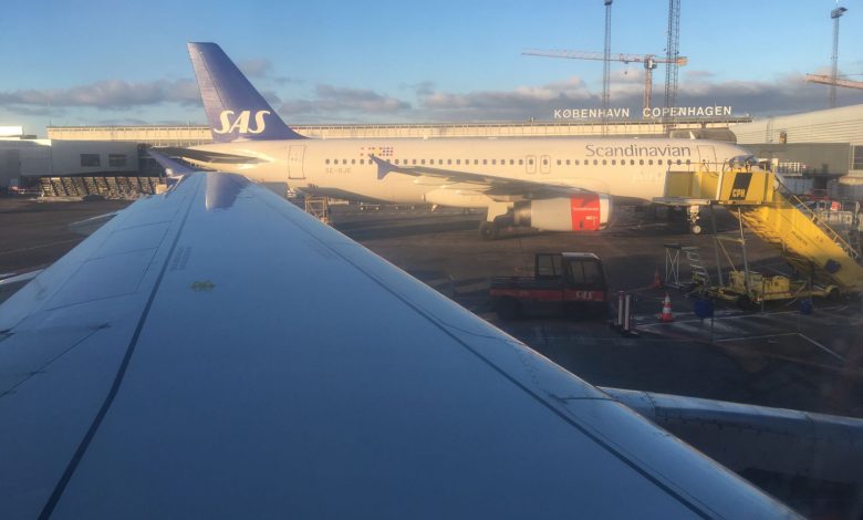Her kommer højdepunktet på turen da jeg endelig får muligheden for en tur med SAS’ retromaskine, nemlig OY-KBO med navnet Christian Valdemar Viking. Uheldigvis er det både mørkt og vanskelig at få et billede af maskinen fra gaten. Vel ombord har rejsefølget og jeg sikret os række 1 ABC med ledigt midtersæde endnu en gang. På denne afgang er der betydelig færre i Plus. Totalt på 3,5 række er der ikke mere end 6 passagerer, noget som bør danne grundlaget for en god serviceoplevelse. I cockpit og i kabinen består besætningen udelukkende af danskere på denne flyvning. Desuden er vi velsignet med to pursere i kabinebesætningen. Dørene lukkes 5 minutter før afgangstid og fyrene fremme i den spidse ende lover en flyvetid på 1 time og 20 minutter. Underligt nok er servicekonceptet på denne flyvning helt anderledes end på Bergen-København, selv om flyvetiden er nogenlunde den samme. Igen får rejsefølget vinduessædet, mens undertegnede har det fint i sæde 1C.