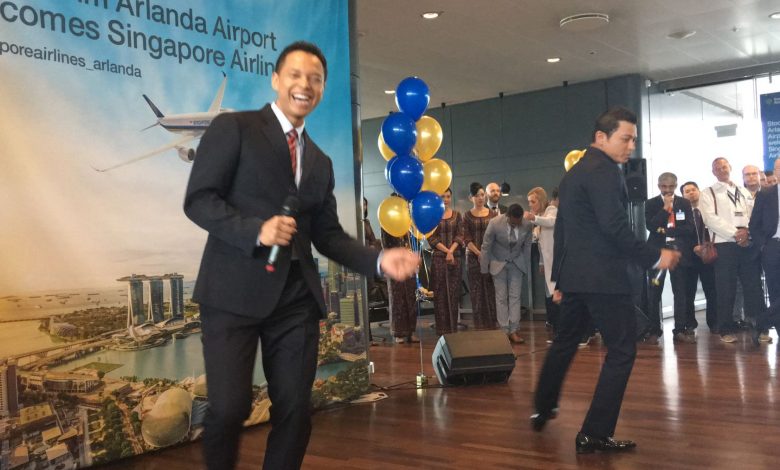 Singapore Airlines landechef i Norge, Henrik Hanevold, boarder første afgang fra Stockholm til Singapore.